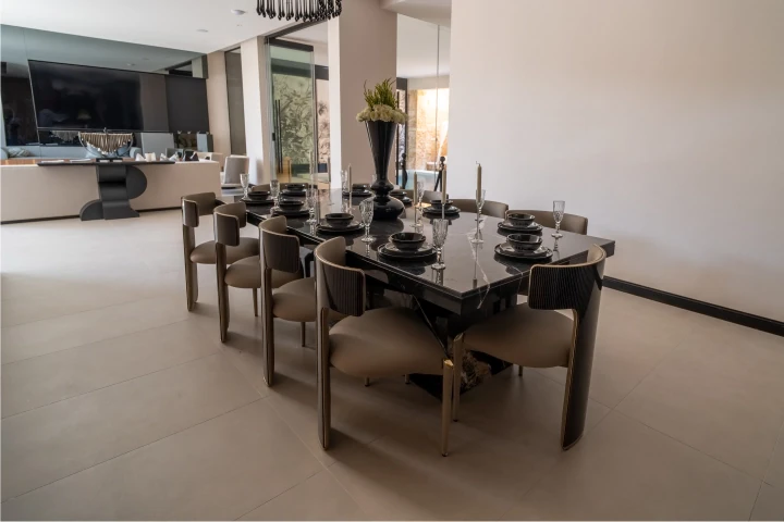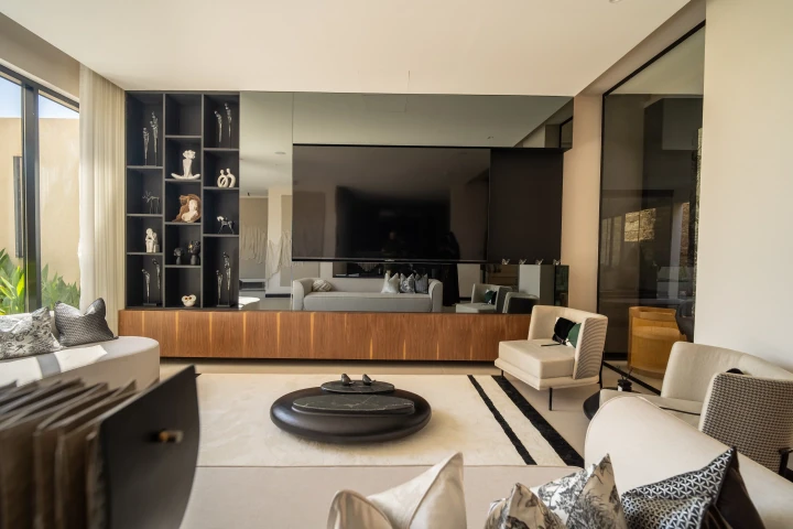مجلس أنيق • 3 صالات واسعة • 5 أجنحة نوم (ماستر) • مطبخين مجهزين • مؤثثة بالكامل • تكييف مركزي متكامل • غرفة سائق • غرفتين للخادمات • غرفة غسيل