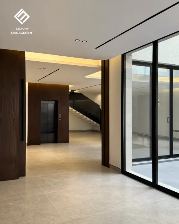 غرفة سائق - مدخل سيارة مسبح وشلال وحدائق - مجلس كبير مطل على المسبح والحدائق - وملحق خارجي مع دوره مياه - صالة طعام وصالة جلوس ايضاً مطله - مطبخ ومستودع - تكييف مخفي راكب - غاز مركزي - مصعد راكب